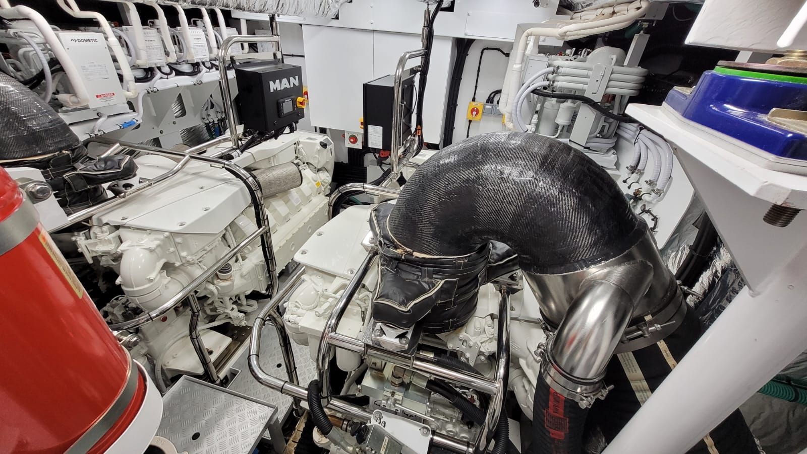 Powered by twin MAN V12-1650 engines (1,650 hp each), the Princess Y72 reaches a top speed of approximately 33–34 knots. Seakeeper 18 stabilizers ensure maximum comfort, even in challenging sea conditions.