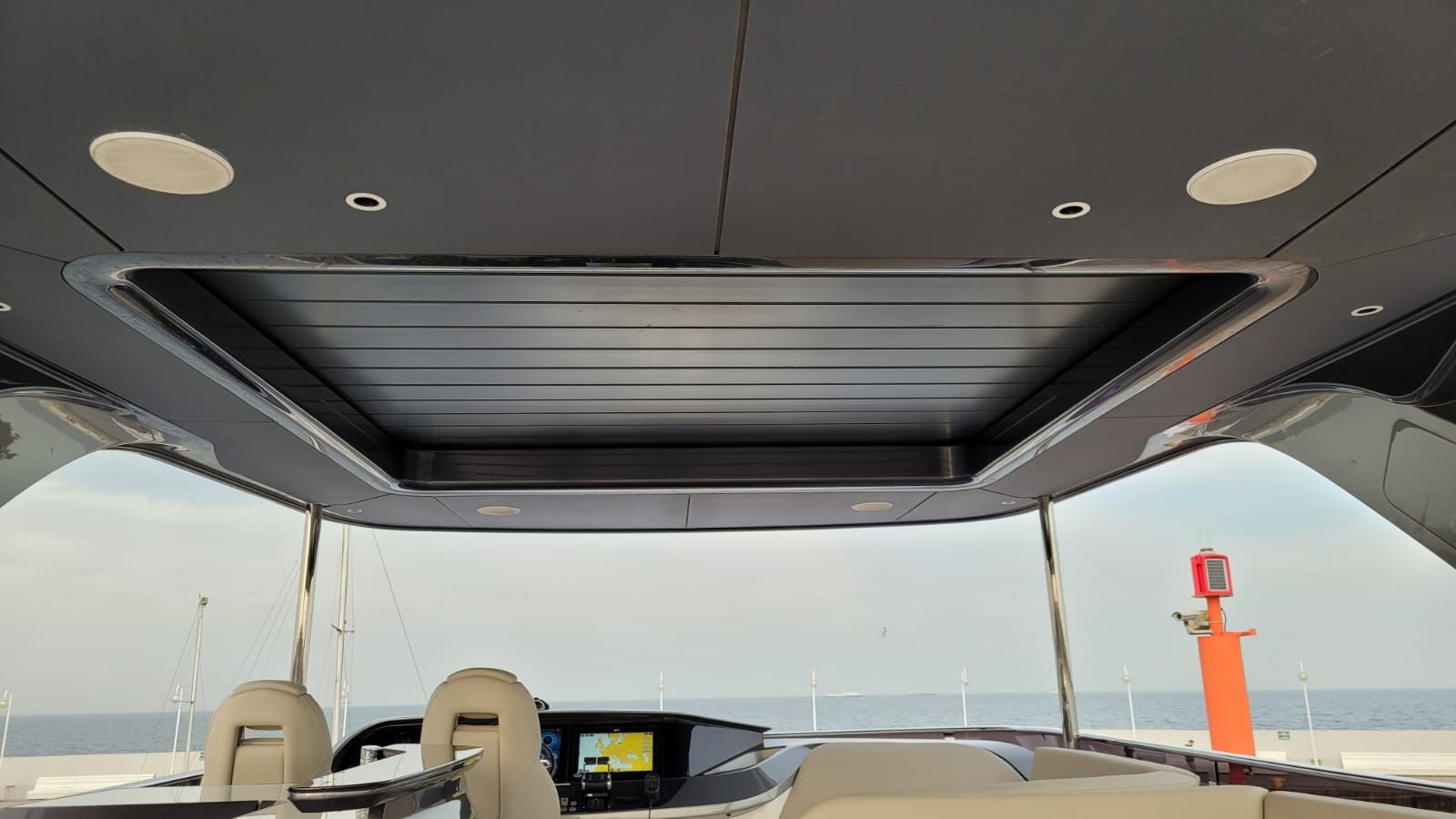 - Electric aft sun awning in Anthracite Grey mesh (not available with crane option on flybridge)